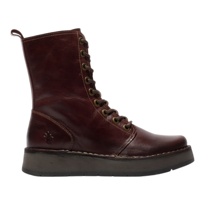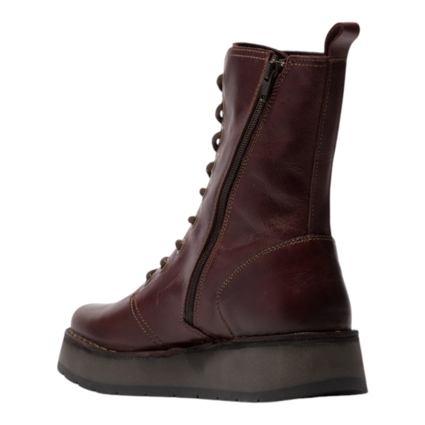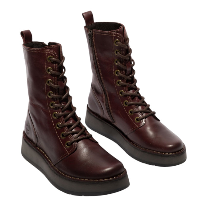 Step out in style with the Fly London P211043016 RAMI043FLY Rug in a rich wine shade. These lace-up ankle boots feature a sturdy 3.5cm sole, combining comfort with a touch of edge. Crafted from supple leather, they add a bold splash of colour and an adventurous vibe to any outfit. Perfect for those who like to walk their own path with a playful twist.
